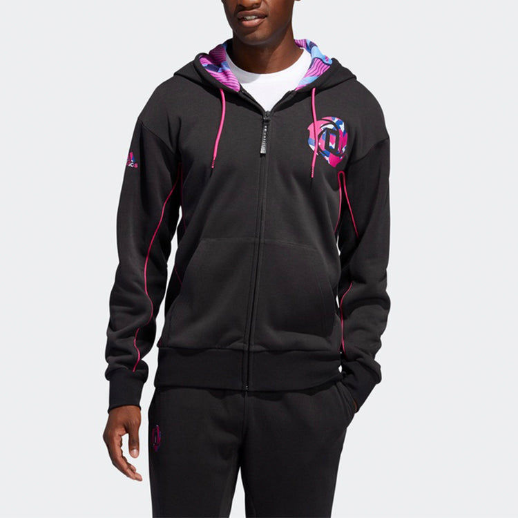 adidas Basketball Sports Printing Knit Hooded Jacket Black FM0024