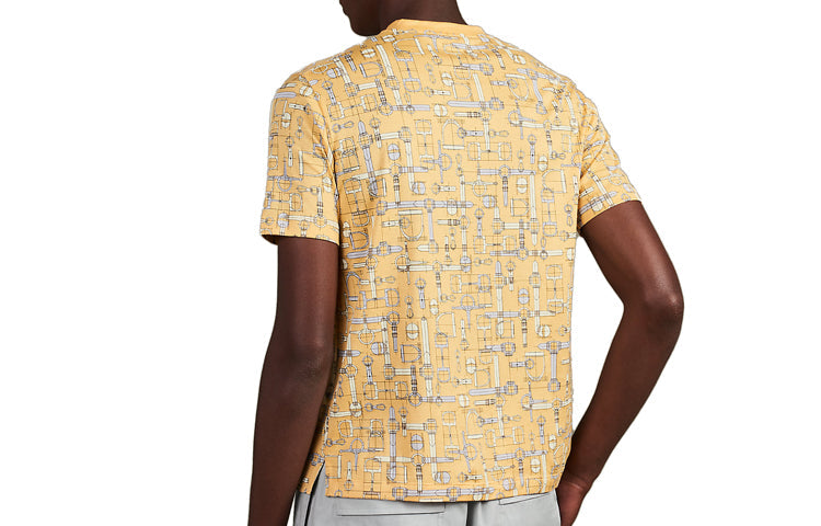 Men's HERMES Labyrinthe Equestre Full Print Pattern Printing Round Neck Short Sleeve Yellow H037735-HA1Q