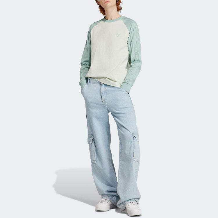 (WMNS) adidas originals Long Sleeve T-Shirt 'White Green' IN4136