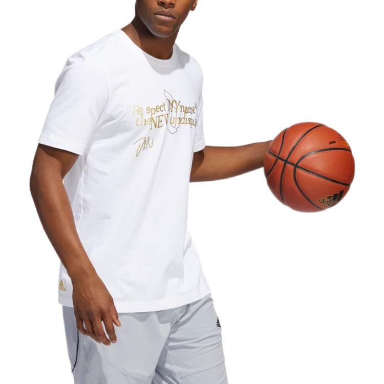 Men's adidas Casual Alphabet Solid Color Sports Short Sleeve White T-Shirt HB5478