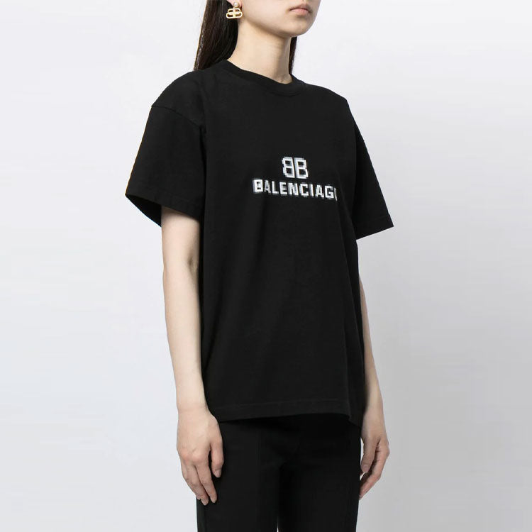 Balenciaga Mosaic Logo BB Alphabet Loose Short Sleeve Black 612965TKVI71070