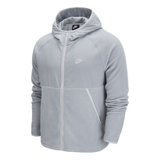 Nike Sportswear Full-length zipper Cardigan hooded Fleece Lined Jacket light grey DM1220-077