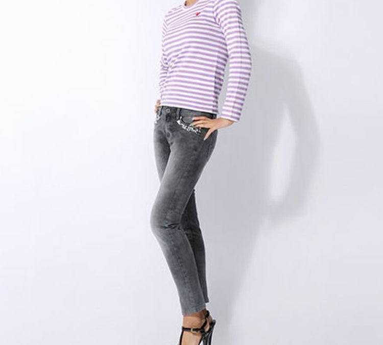 (WMNS) COMME des GARCONS PLAY Striped Mini Logo Long Sleeves Tee 'Purple White' AZ-T217-051-4