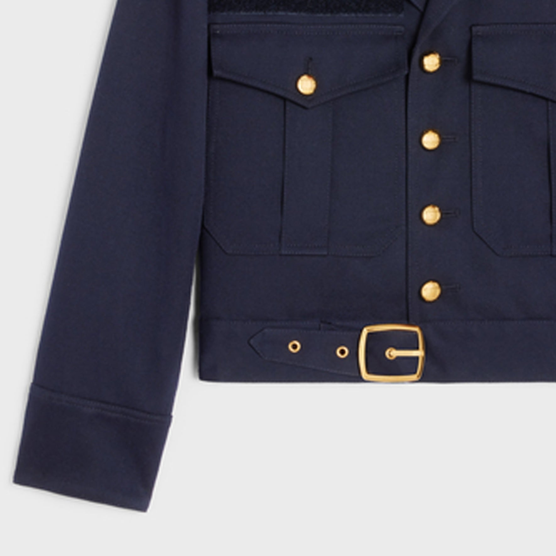 CELINE Cropped Saharienne Jacket In Diagonal Wool