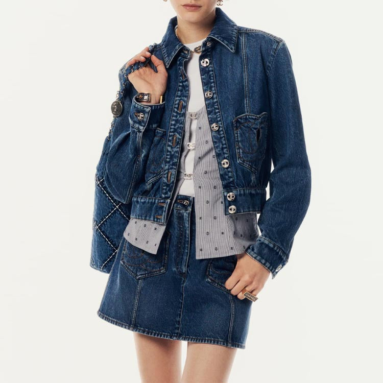 CHANEL Denim Short Skirts Women's Blue