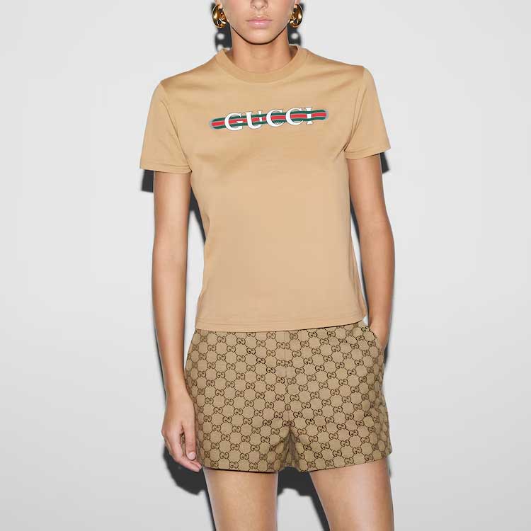 (WMNS) Gucci Cotton Jersey T-Shirt With Print 'Beige' 787299-XJGNW-2293