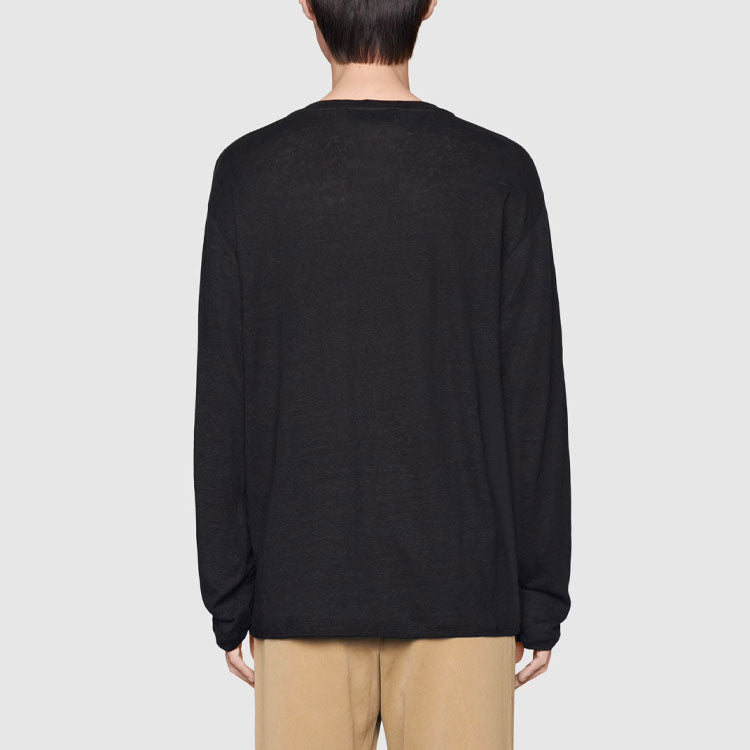 Gucci Linen V-Neck T-Shirt With Double G 'Black' 645270-XJC6N-1043