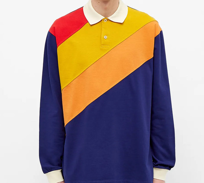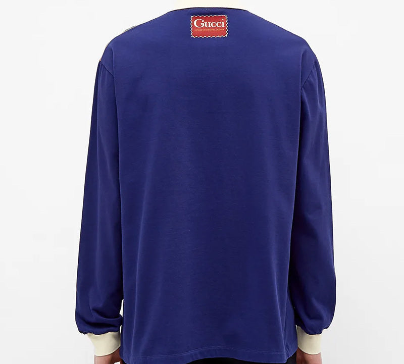 Gucci Color Matching Long Sleeve Polo Shirt For Men Blue 613844-XJCGR-4449
