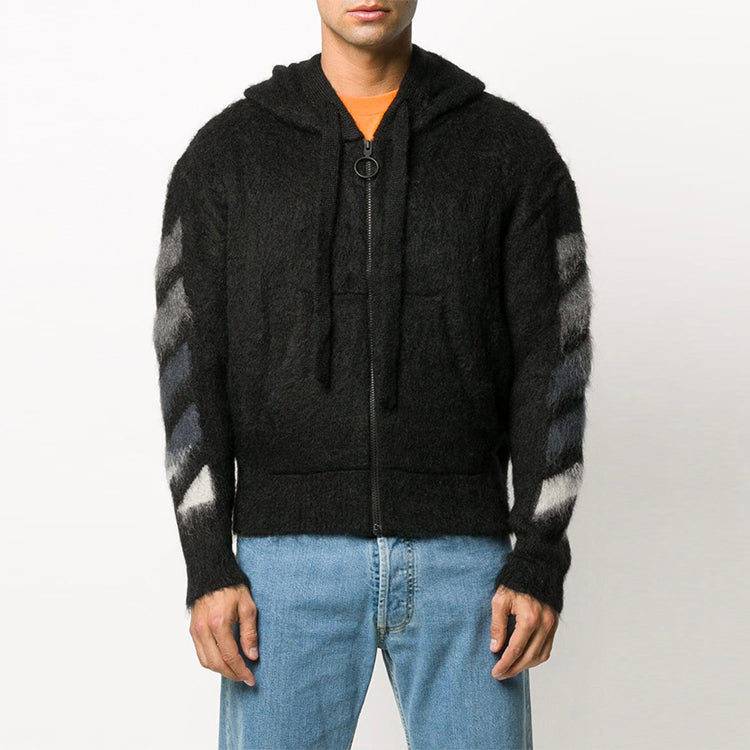 Off-White Back Printing hooded Knit Jacket Black OMHA073R20B020231088