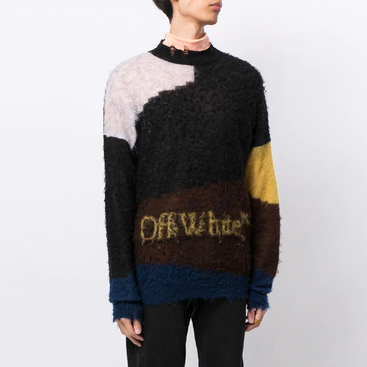 Off-White Cozy Round Neck Splicing Colorblock OMHE062F20KNI0010825