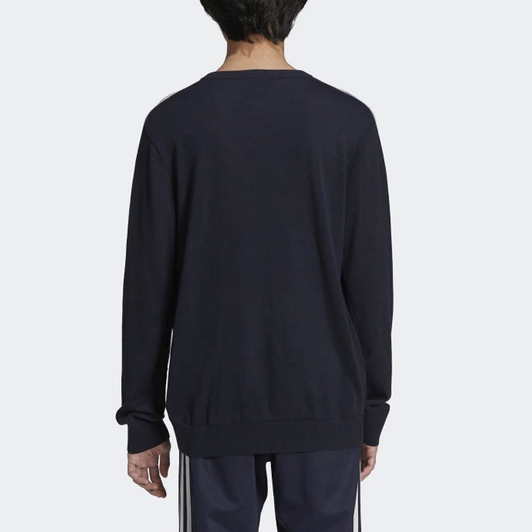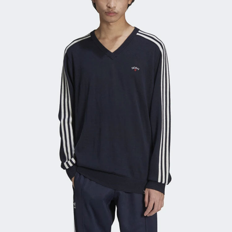 Men's adidas originals x NOAH Crossover V-neck Embroidered Logo Side Stripe V Neck Wool Sweater Legendary Ink Blue HC4303