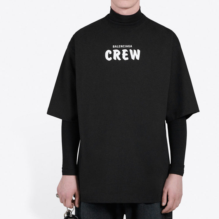 Men's Balenciaga Crew Alphabet Printing Short Sleeve Black 620969TIV741070