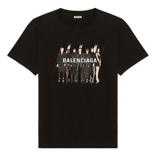 Balenciaga Band Portrait Printing Logo Retro Loose Short Sleeve Unisex Black 612966TIVA11000