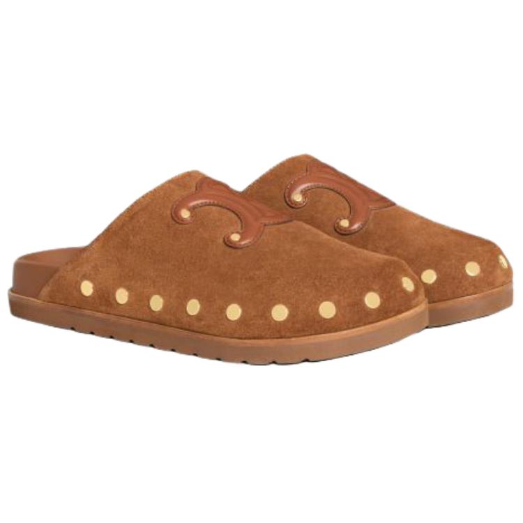 CELINE Rubber Sole Slip Resistant Closed Toe Slippers Women's Brown