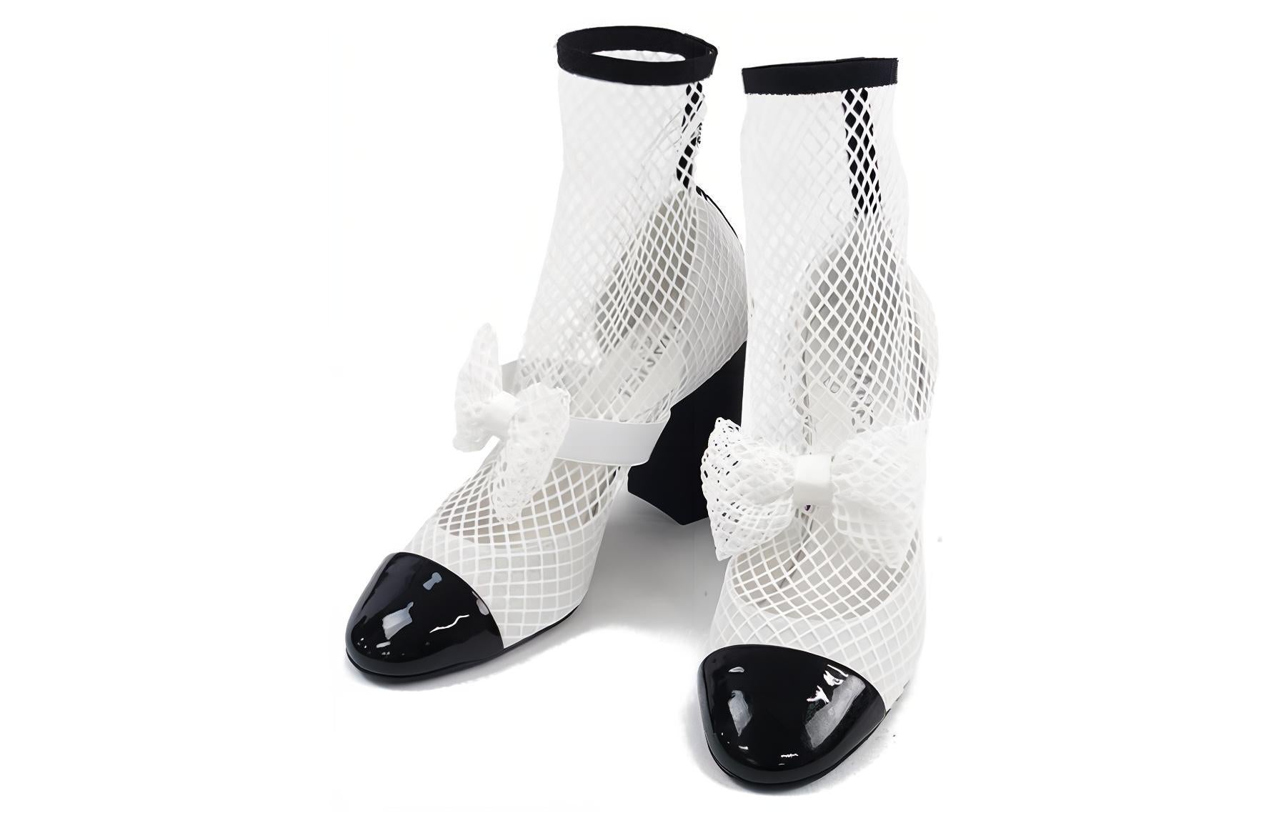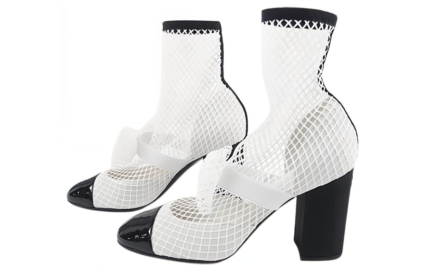 CHANEL Ankle Boots 9cm Women's White Black