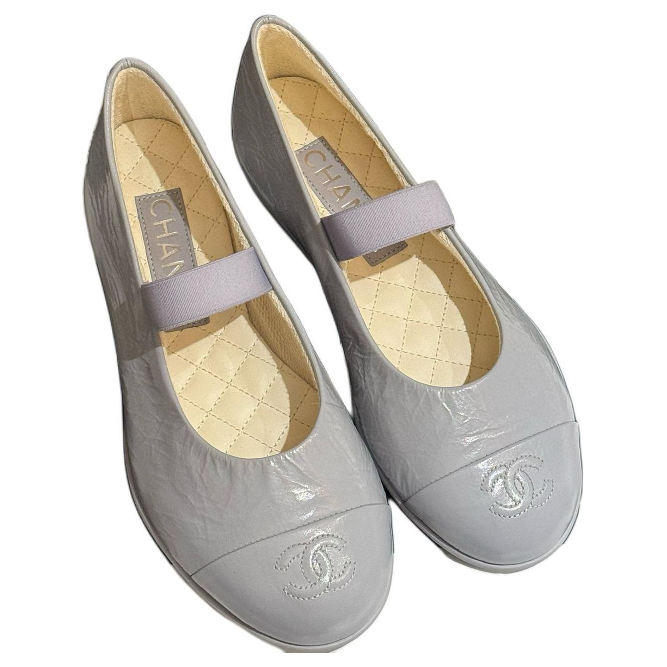 CHANEL Flat Mary Jane Shoes Women's Gray