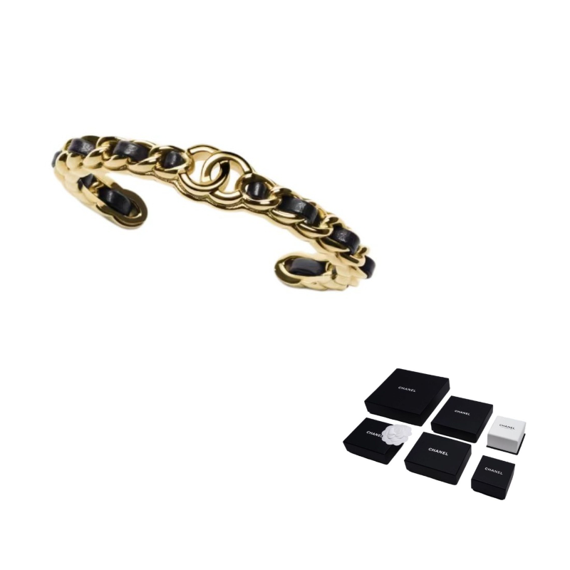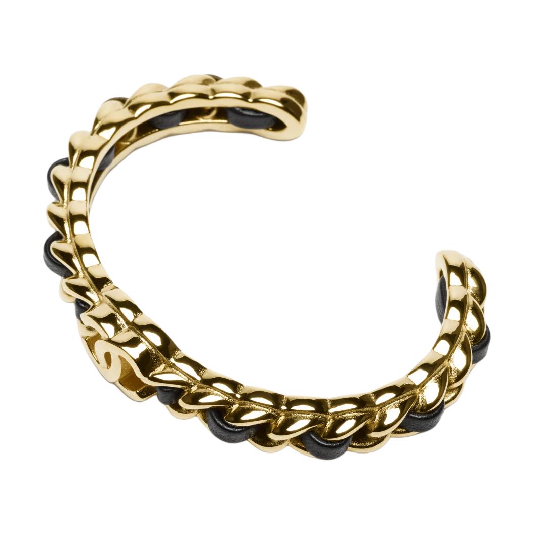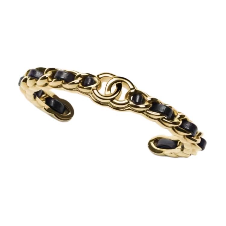 CHANEL Metal Lambskin Bangles Women's Black/Gold