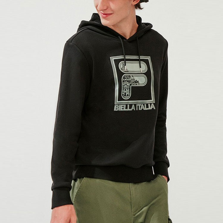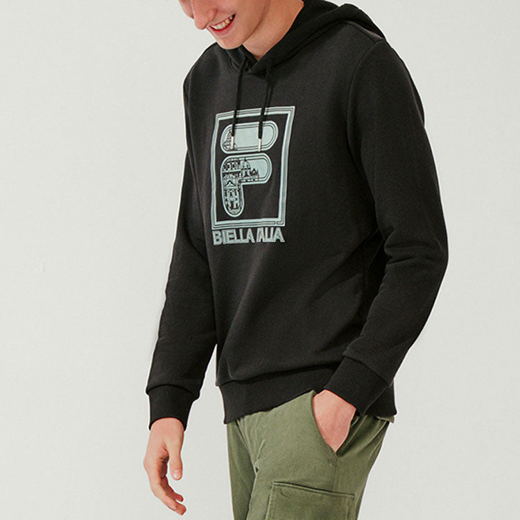 FILA Print Monogrammed Sports Hooded Jumper For Men Black F11M018206G-BK