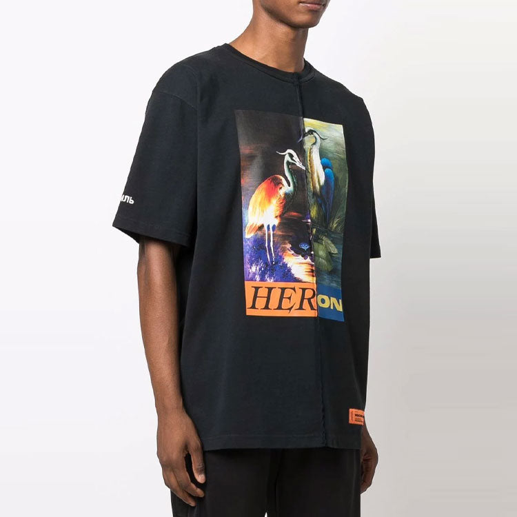 HERON PRESTON Split Herons T-Shirt 'Black Orange' HMAA029F21JER0011022
