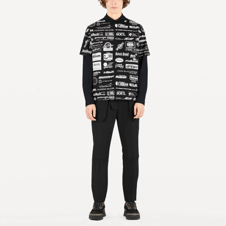 Men's LOUIS VUITTON Alphabet Logo Printing Casual Short Sleeve Black 1A5DGN