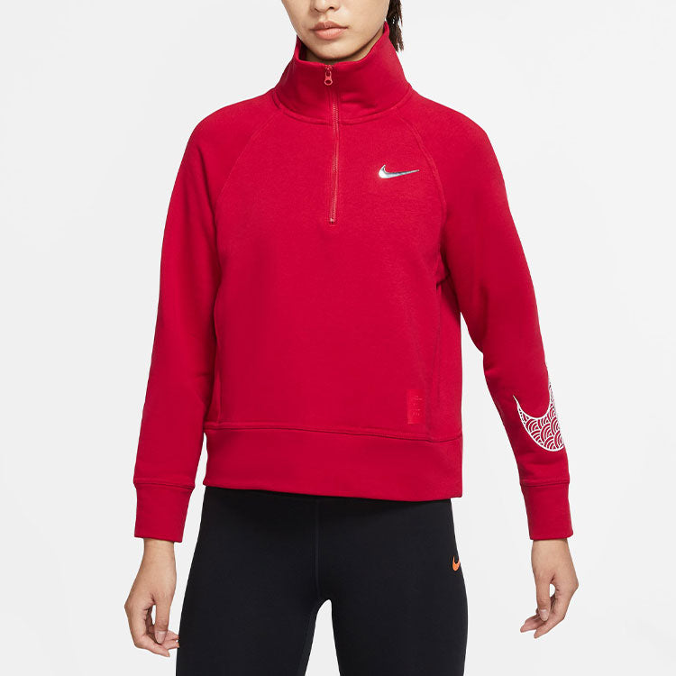 (WMNS) Nike CNY New Year's Edition Casual Sports Solid Color Half Zipper Stand Collar Hoodie Jacket Red DQ5371-687