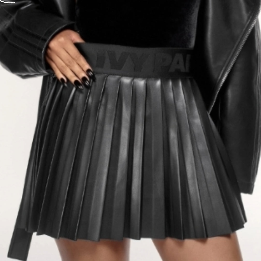 (WMNS) adidas originals x IVY PARK Leather Pleated Mini Skirt 'Black' IN8667