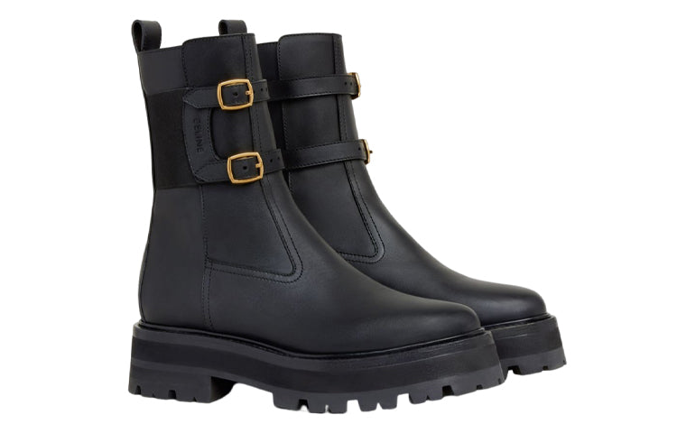 CELINE Bulky Mid Calf Boots Women's Black