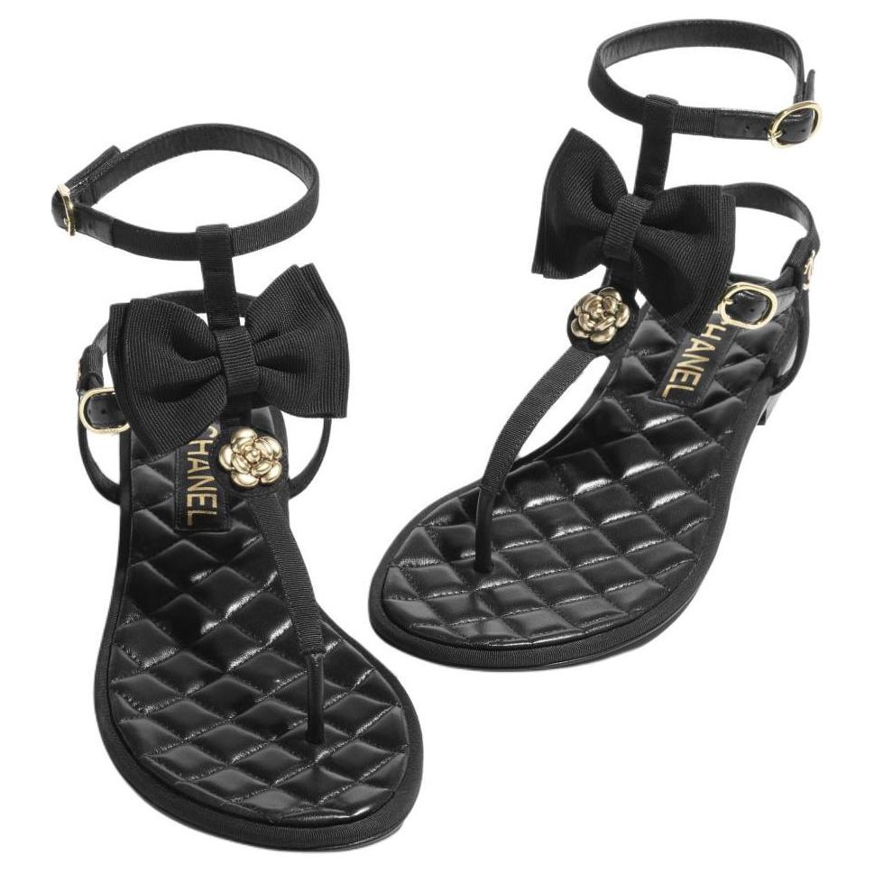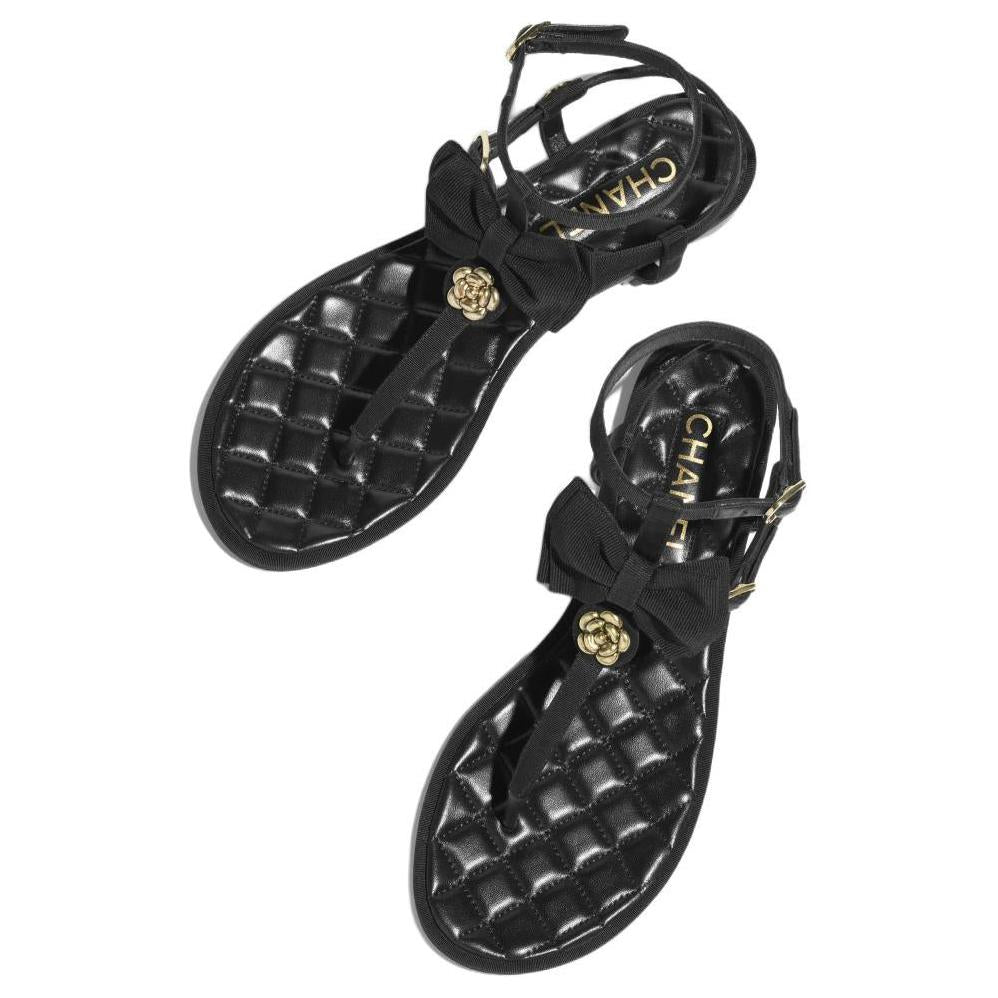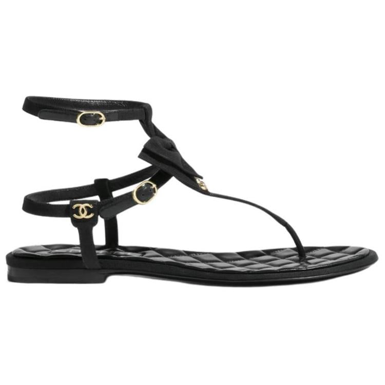 CHANEL Strap Sandals 1cm Women's Black