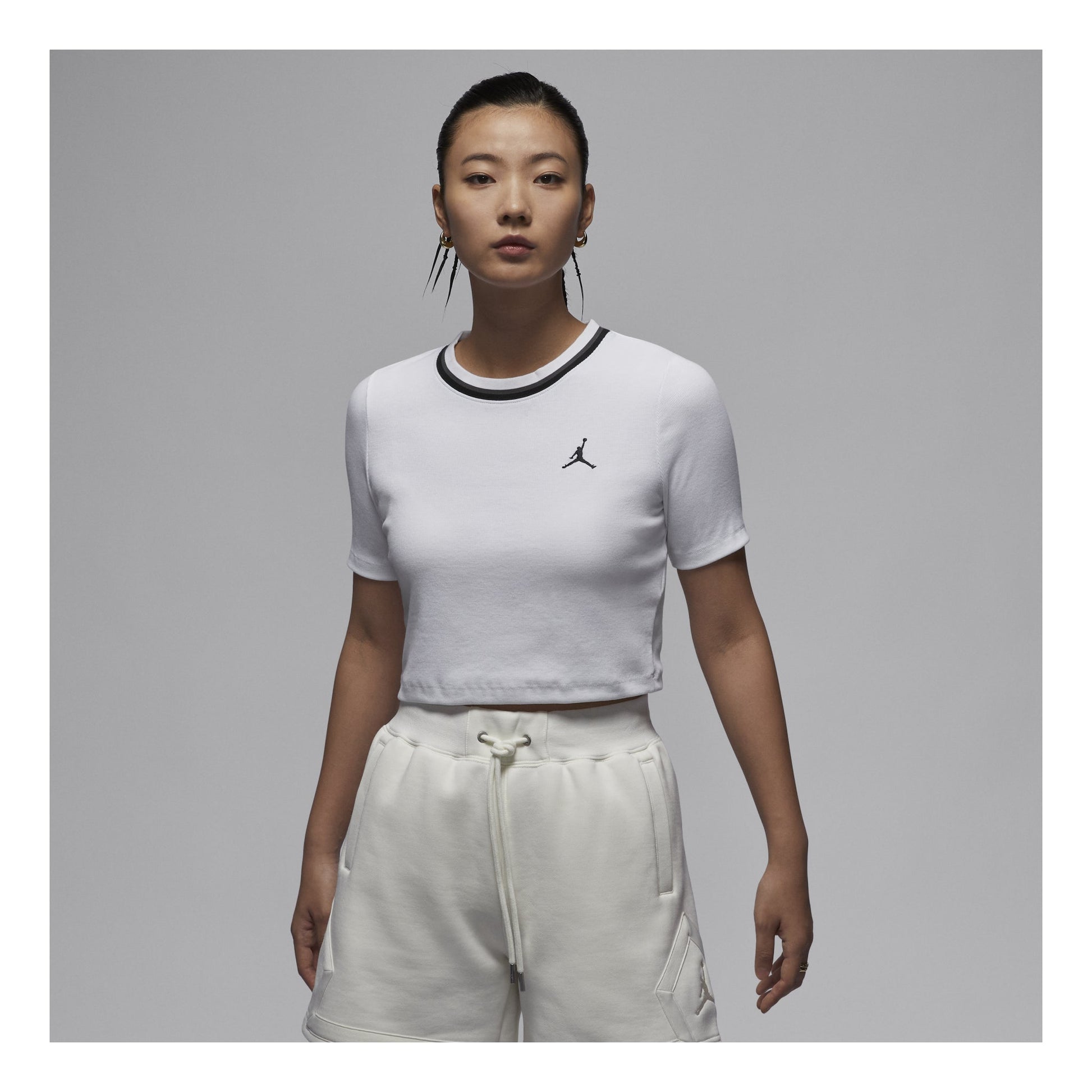 (WMNS) Air Jordan Knit Crop T-shirt Asia Sizing 'White Black' FV7090-100