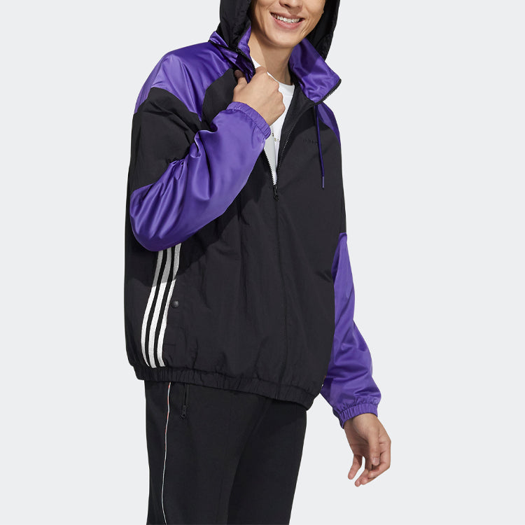 adidas neo M Ss Feb Wl Wb Contrasting Colors Sports Stand Collar Windproof Jacket Black GP4809