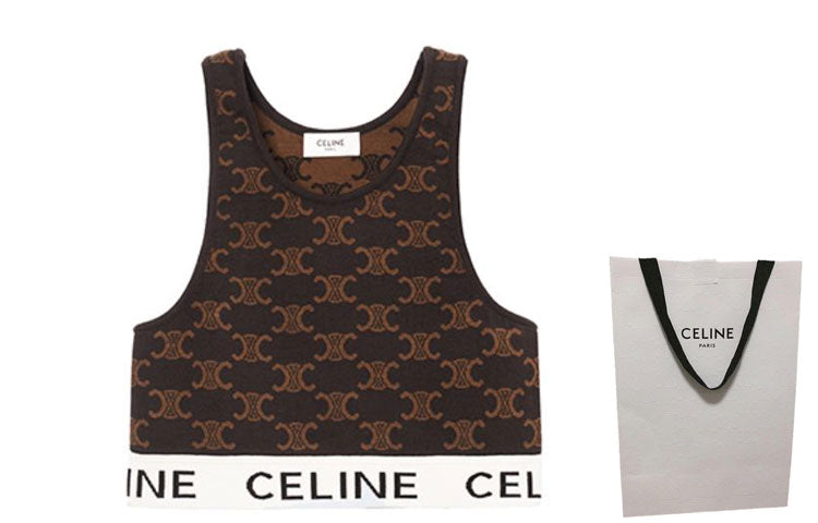 CELINE SS23 Monogram Logo Sport Silk Bra Brown