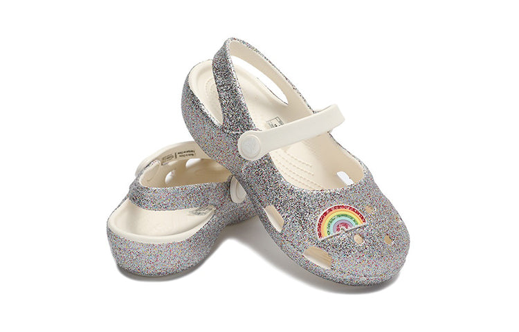 (PS) Crocs Outdoor Flat Heel Shiny Sports Silver Sandals 206370-93R